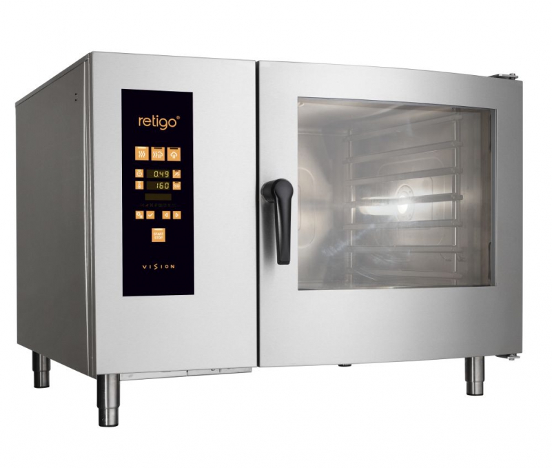 De modelreeks combi-ovens RETIGO Orange Vision werd gecreëerd op basis van de eisen om klanten te voldoen die minder eisen stellen aan het aantal functies in de basiskonfiguratie, maar de nadruk leggen op hoge kwaliteit en eenvoudige bediening. In tegenstelling tot de modelreeks Blue Vision, zijn Orange Vision combi-ovens alleen uitgerust met een automatisch reinigingssysteem, een ventilator met 7 snelheden en essentiële basisfunctionaliteiten. Optionele uitrusting omvat een geïntegreerde douche, een klepventiel en 99 programma's met 9 stappen. De klant heeft dus de mogelijkheid om zijn machine te configureren op basis van de behoeften en niet te betalen voor iets wat hij nooit zal gebruiken. Het elegante functionele ontwerp benadrukt de eenvoud van de apparaten, het LED-display maakt eenvoudige instellingen en bediening mogelijk.